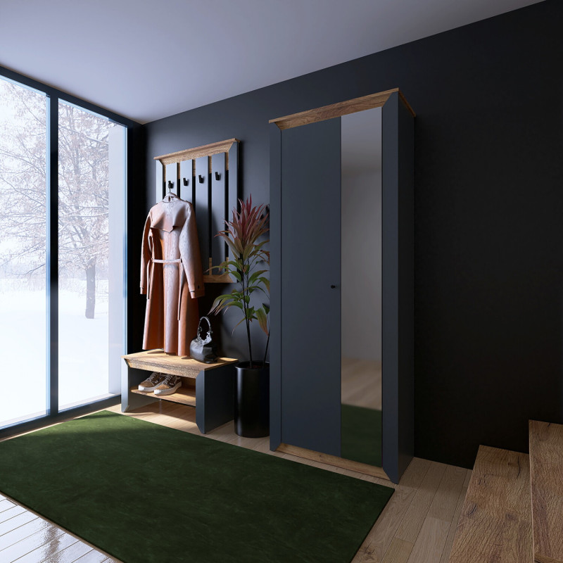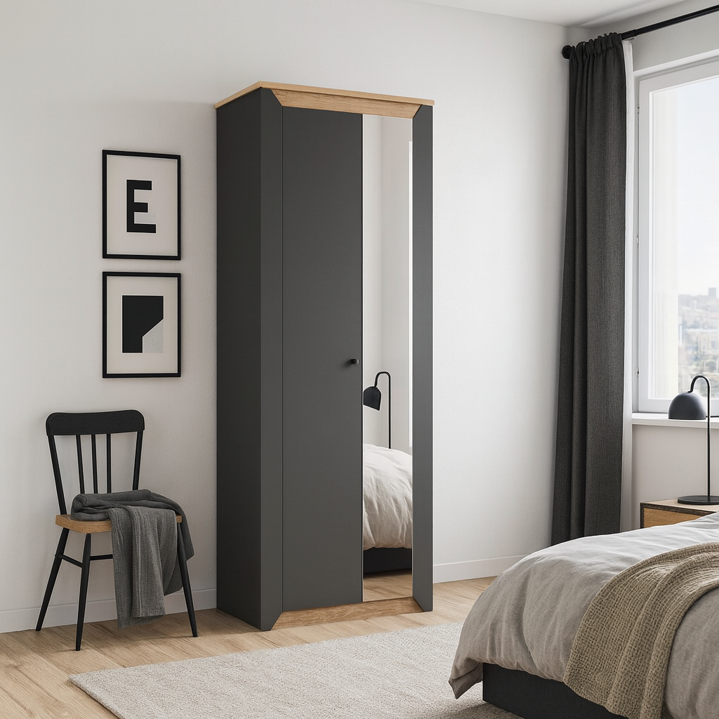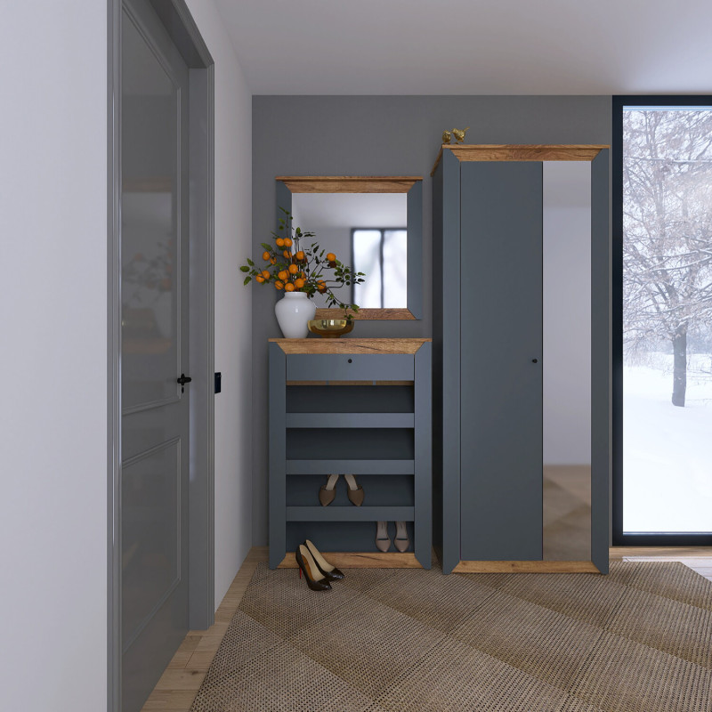 Пенал закритий з дзеркалом Н-800, Дуб Крафт Золотий, Графіт