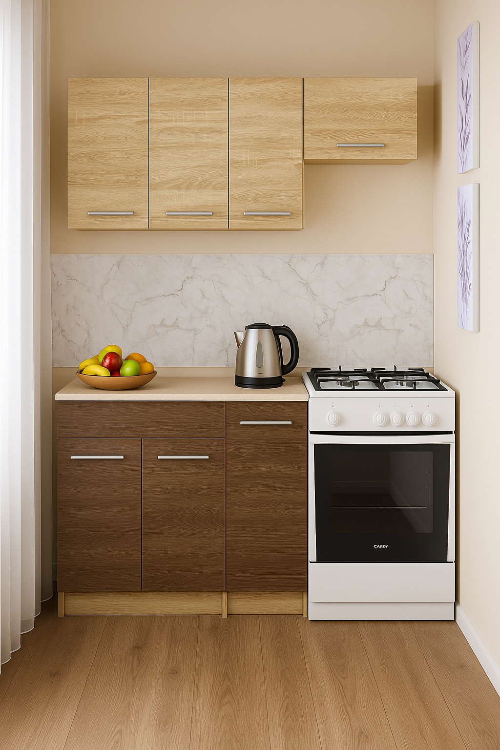 ✅ світлі бежеві тони фасадів роблять меблі візуально легшими – гарнітур впишеться навіть у невелику кухню
