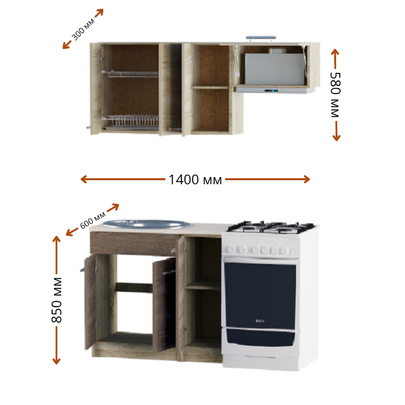 Кухонний гарнітур Серія 580 набір 1.4 метра – це практичний варіант для організації простору в сучасній кухні. У дизайні меблевого набору переважають прості чіткі лінії та функціональні рішення: