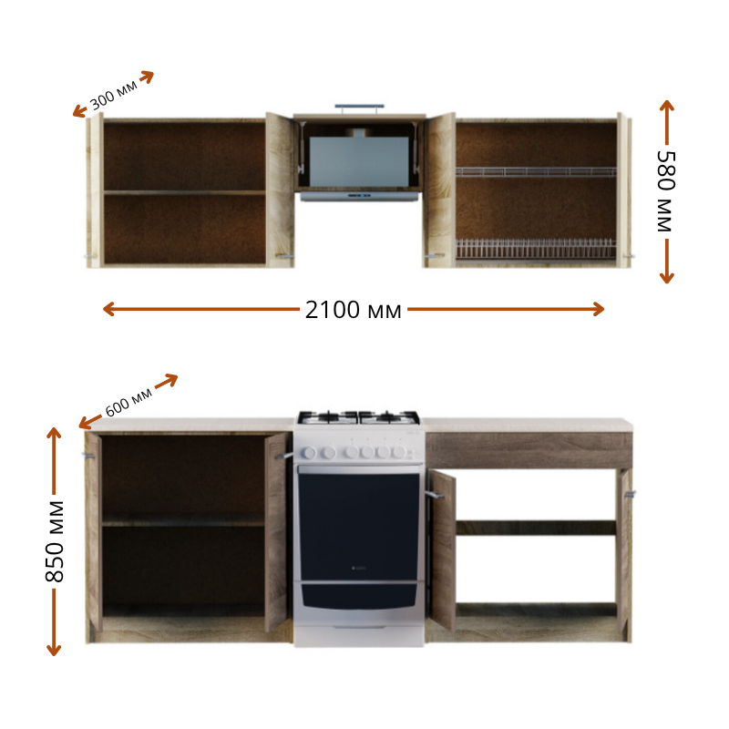 Кухонний гарнітур Серія 580 – практичний варіант для організації простору у сучасній кухні. У дизайні переважають прості чіткі лінії та функціональні рішення:
