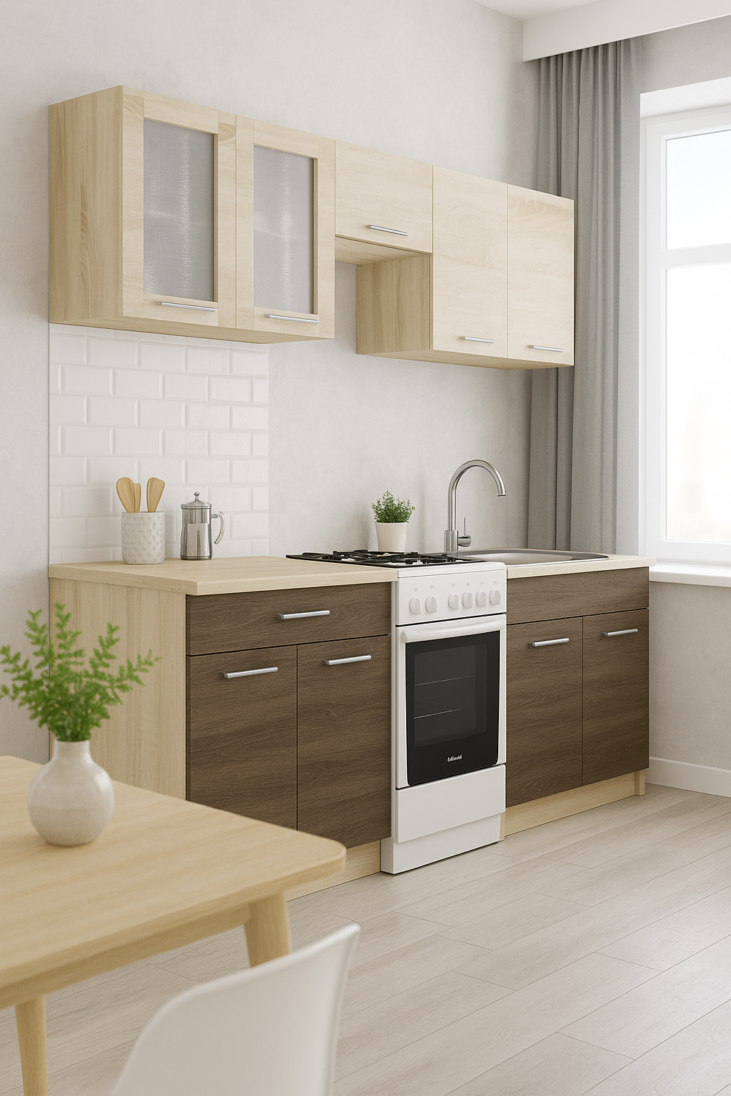 Кухонний гарнітур Серія 580 – це практичний вибір для організації простору у сучасній кухні. Дизайн вирізняється простими чіткими лініями та функціональними рішеннями, які створюють комфорт та затишок.