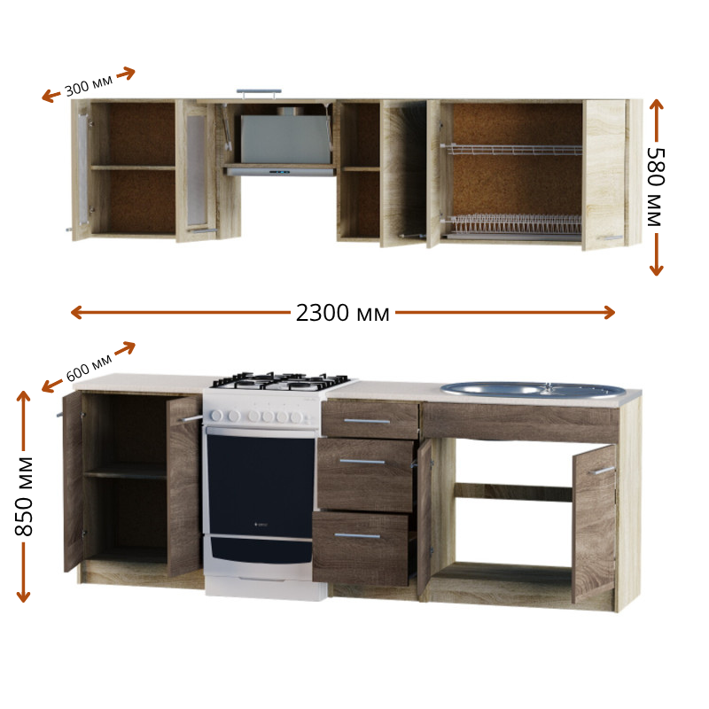 ✅ висота нижніх шаф – 82 см (без урахування стільниці)