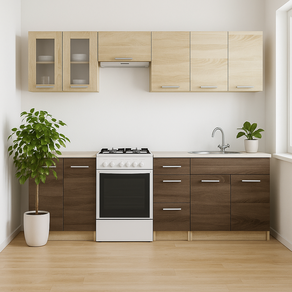 - Висота нижніх шаф: 82 см (без стільниці)