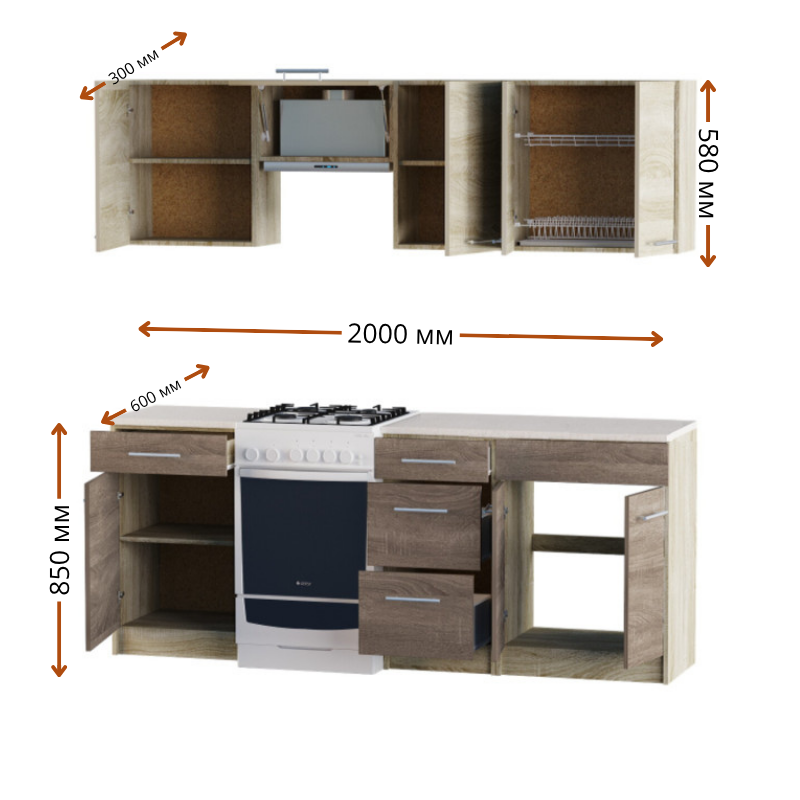 Кухонний гарнітур Серія 580 – це практичний варіант для організації простору в сучасній кухні.