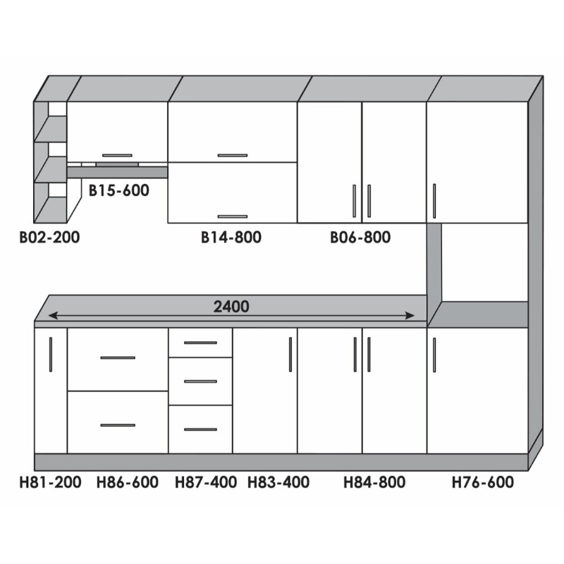 - Висота нижніх шаф: 82 см (без урахування стільниці)