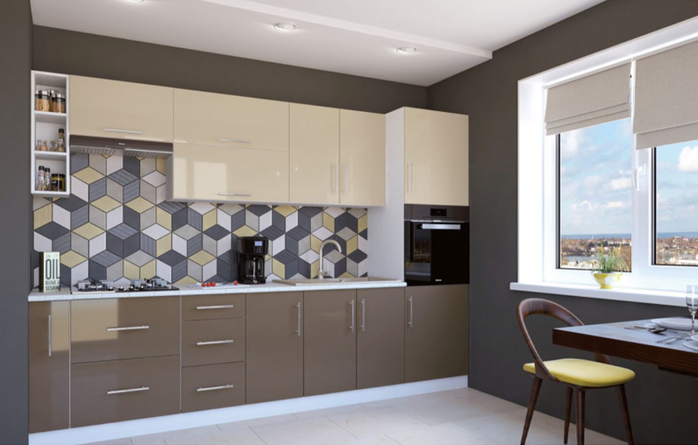 Кухонний набір МДФ 3.0 м, зі стільницею, Латте глянець, Капучино глянець