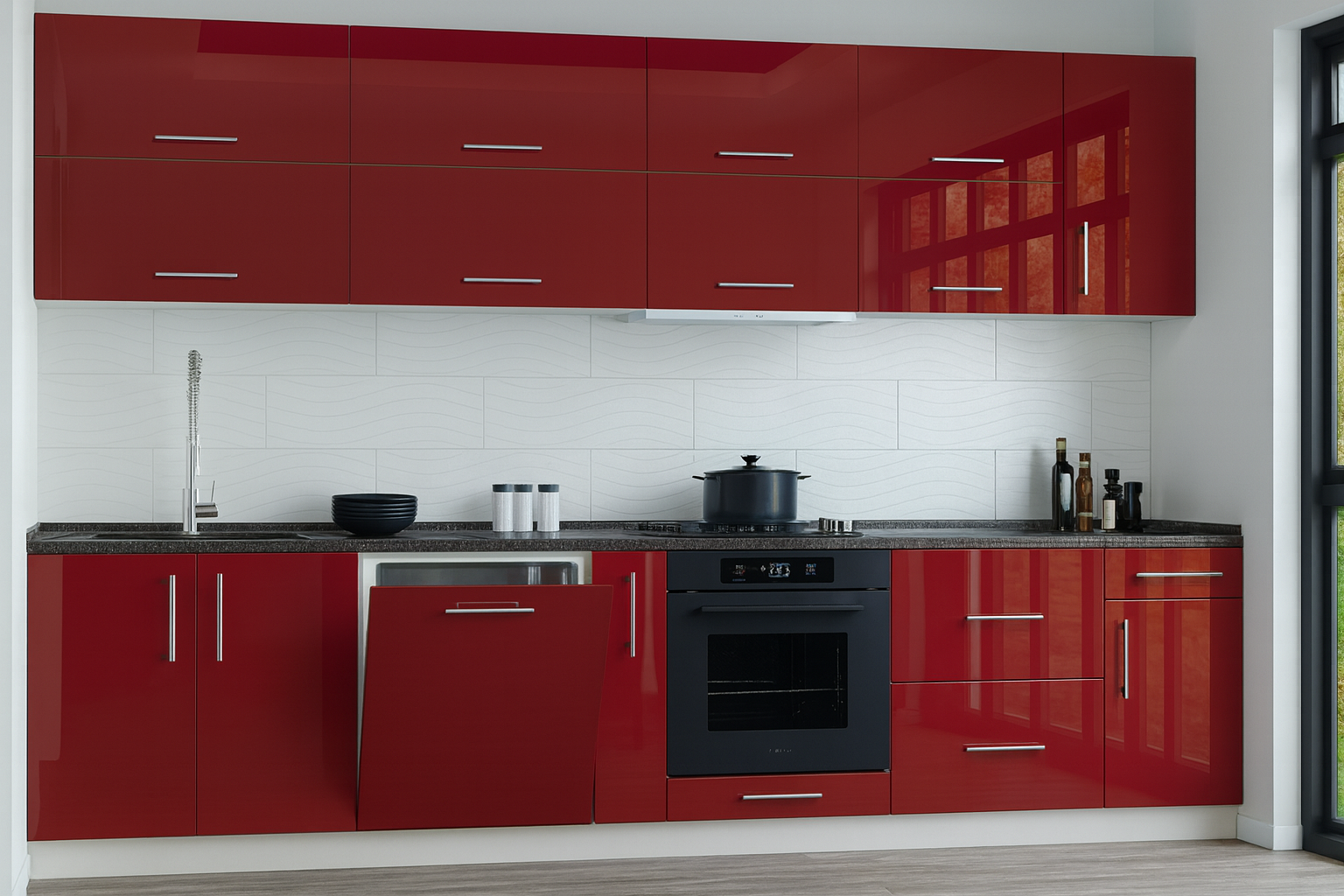 Кухонний набір МДФ 3.2 м зі стільницею, фасади Бордо глянецьСерія МДФ набір кухонний прямий 3.2 м, зі стільницею, Бордо глянець
