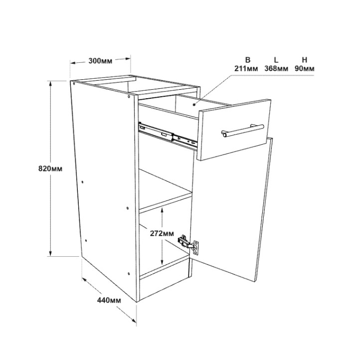 Розміри (ДxШхВ) | 30см x 46см x 82см |