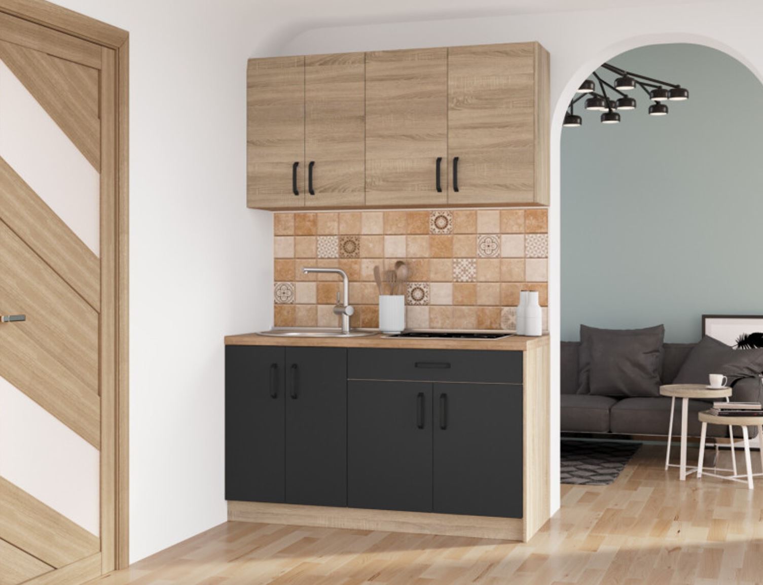 Серія 720 набір 1.4 м, Дуб Сонома, Антрацит. Зі стільницеюСерія 720 набір 1.4 м, Дуб Сонома, Антрацит. Зі стільницею