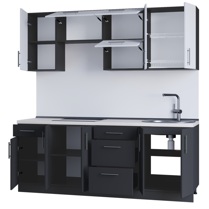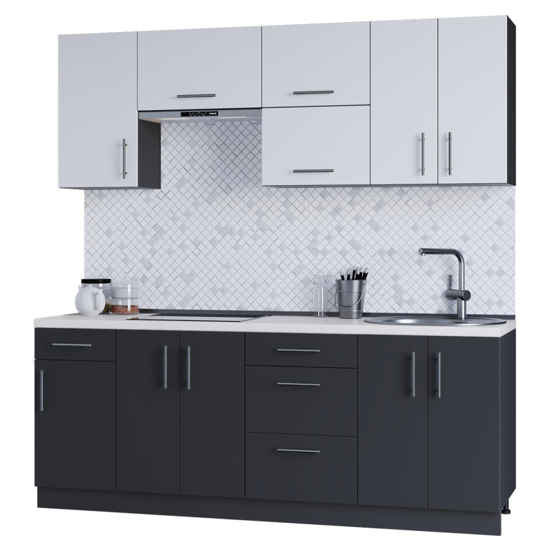 Кухонний гарнітур серії “Серія 720” – 2.1 м — це ідеальний вибір для організації простору на сучасній кухні. Модель поєднує в собі стильні, чітко окреслені лінії та продумані функціональні рішення, що забезпечують зручність у використанні.