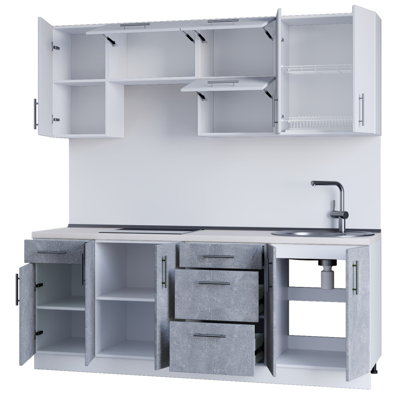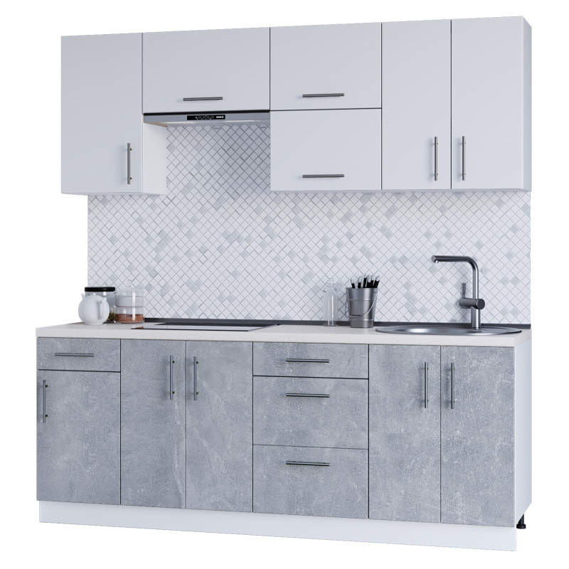 Серія 720 набір 2.1 м, Білий, Бетон. Зі стільницею.Серія 720 набір 2.1 м, Білий, Бетон. Зі стільницею.