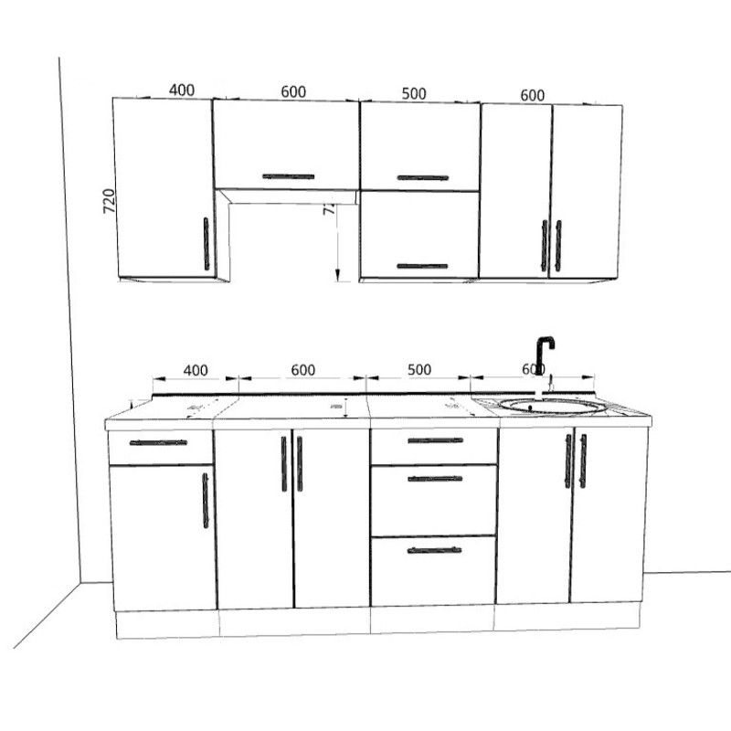 • Висота верхніх шаф: 72 см