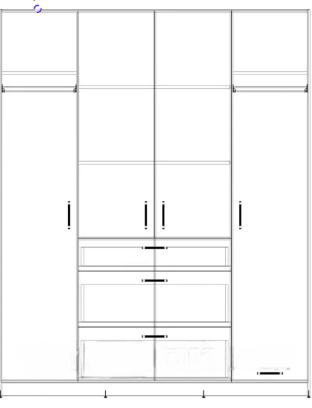 Є відділення з полицями, 3 великих шухляди, а також 2 платяних відділа