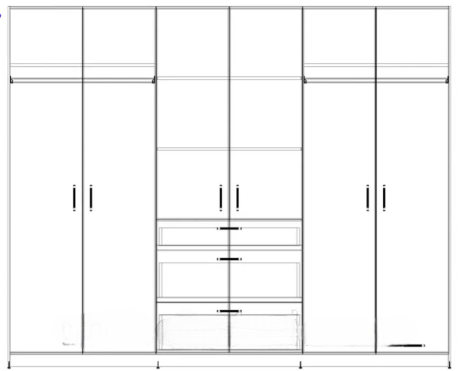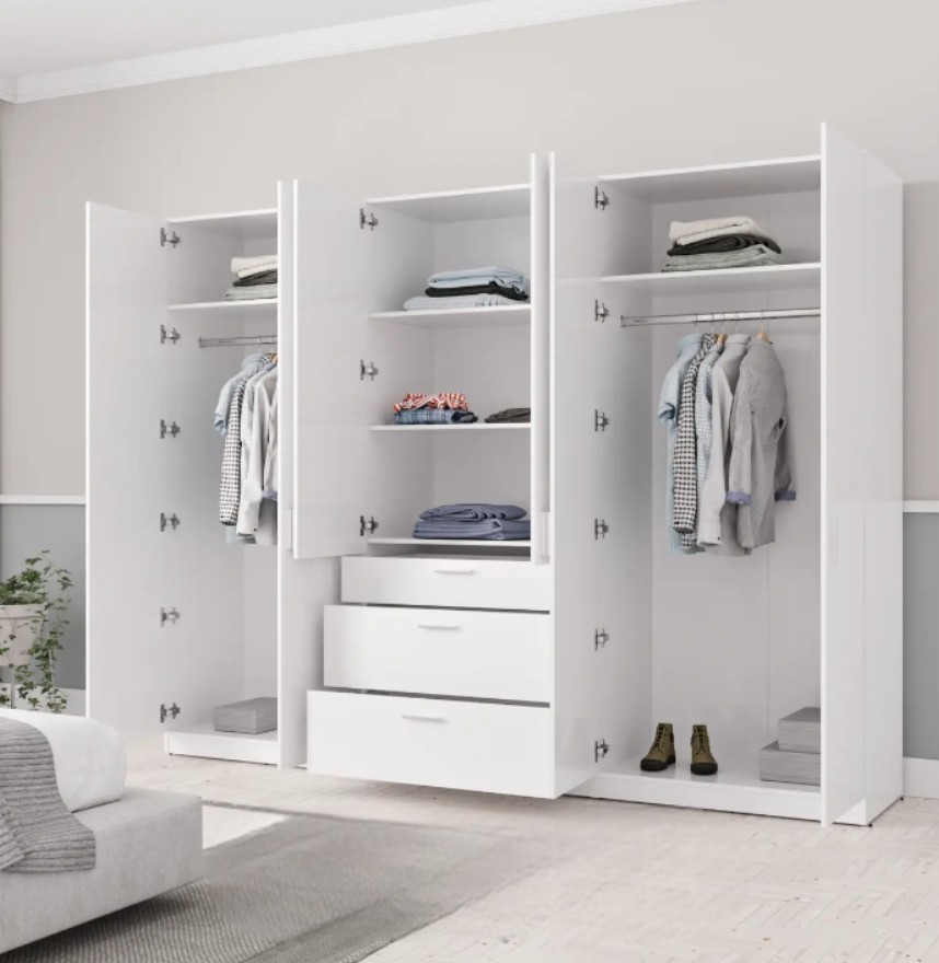 ✅ Має полиці, 3 великі шухляди та 2 секції для вішаків