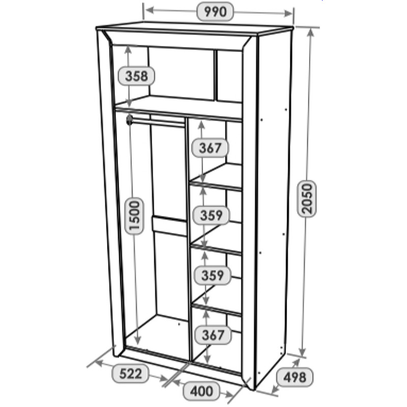 Розміри (ШxГxВ): 99 см x 50 см x 205 см