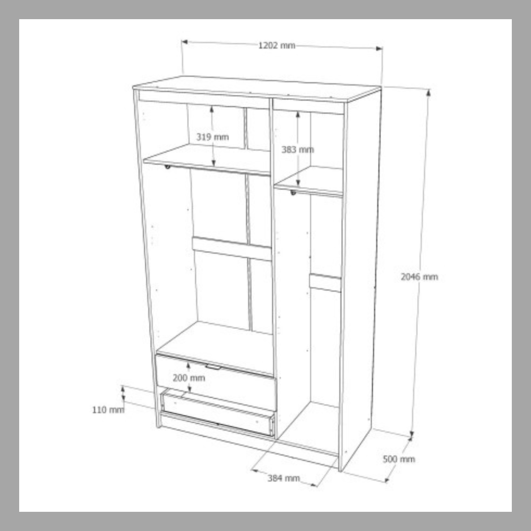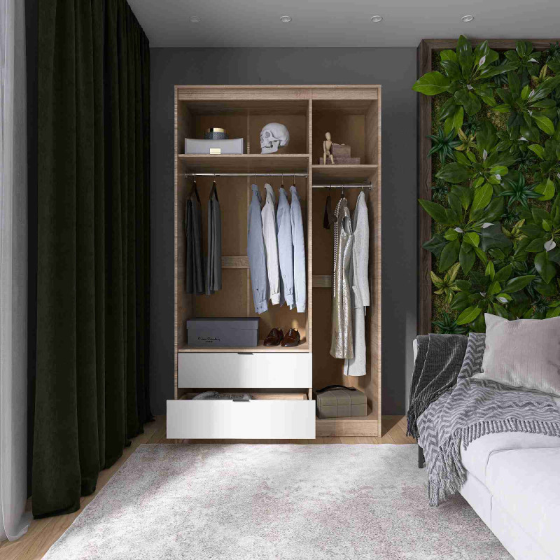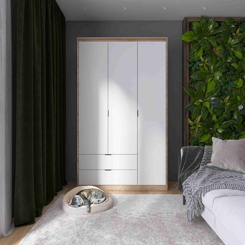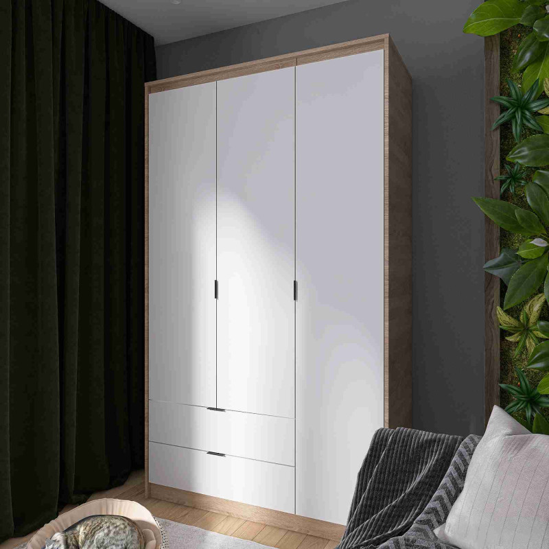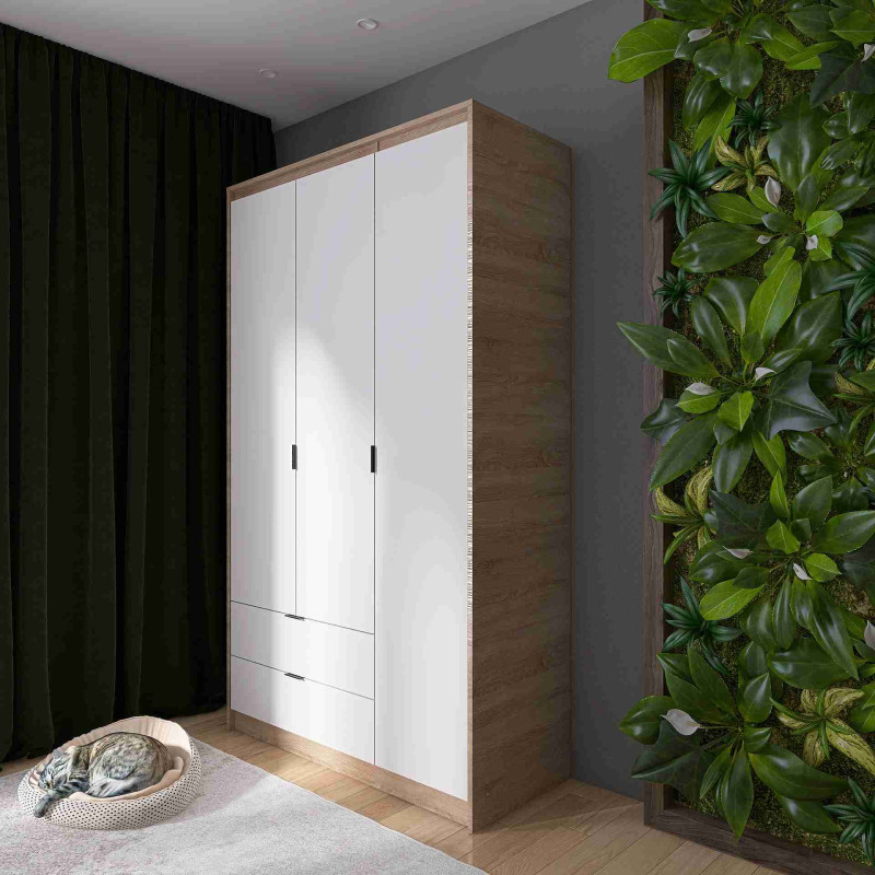 Модель виготовлена з якісного ламінованого ДСП, що вирізняється стійкістю до подряпин, вологи та щоденного зносу. Поверхня приємна на дотик і легко очищується. Завдяки ширині 1200 мм, шафа вміщує велику кількість речей ✅