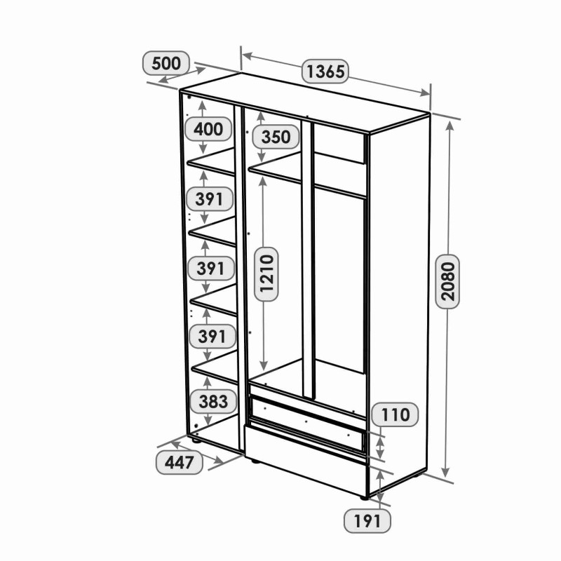 Розміри (ШxГxВ): 137 см x 52 см x 208 см