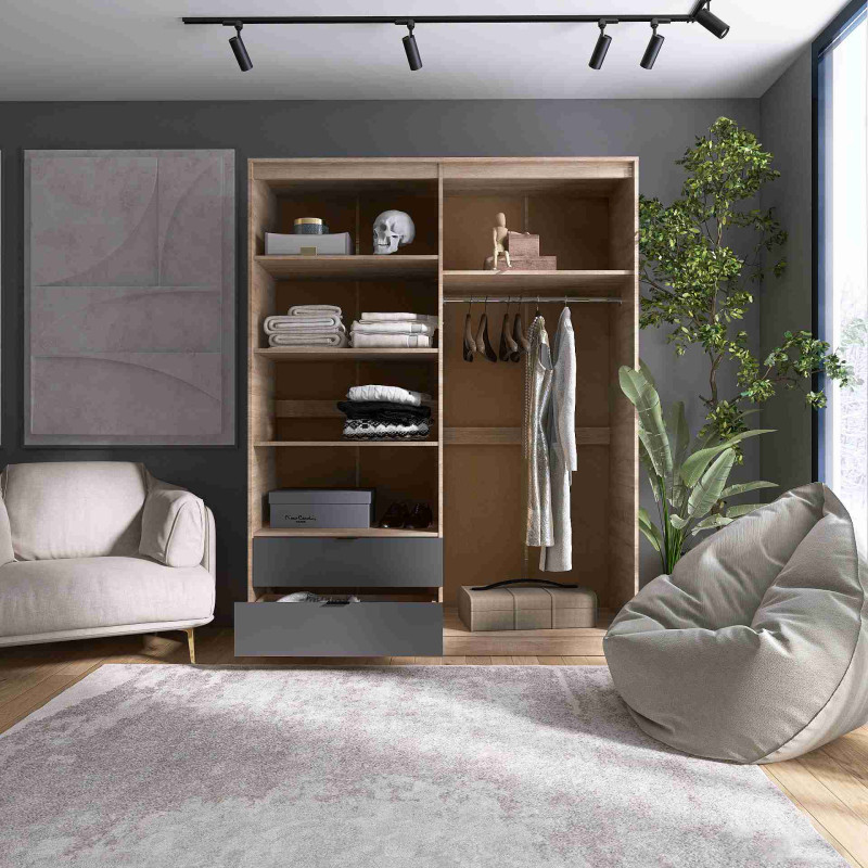 Шафа С-1600 — просторе та стильне рішення для зберігання одягу й побутових речей. ✅ Завдяки сучасному дизайну та продуманому функціоналу, ця модель чудово підійде як для спальні, так і для передпокою чи гардеробної. Шафа гармонійно поєднується з іншими меблями серії, створюючи єдиний, елегантний інтер’єр.