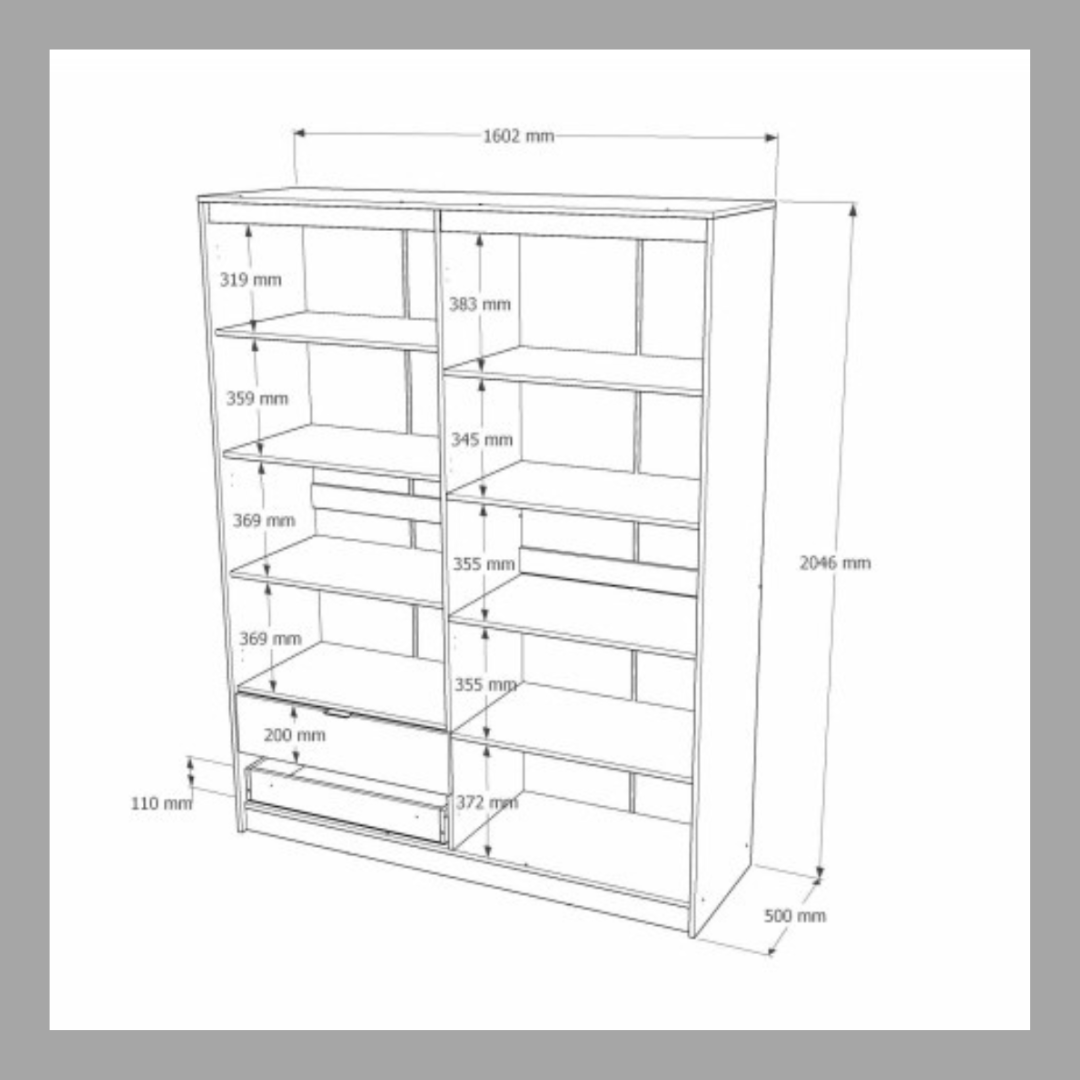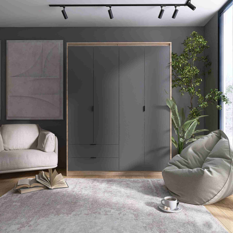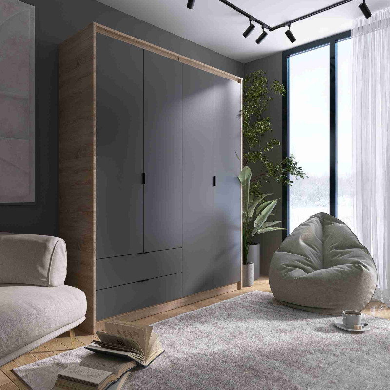 ✅ Модель виготовлена з якісного ламінованого ДСП, що вирізняється стійкістю до подряпин, вологи та щоденного зносу. Поверхня приємна на дотик і легко очищується. Завдяки ширині 1600 мм, шафа вміщує велику кількість речей.