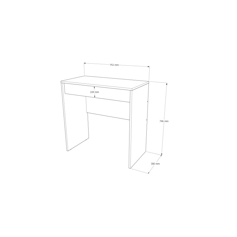 ✅ Модель виконана у сучасному стилі з використанням якісного ламінованого ДСП, стійкого до зносу, подряпин та впливу вологи. Стільниця зручна для розміщення ноутбука, книг, канцелярії чи інших необхідних речей. Незважаючи на компактність, стіл забезпечує достатньо простору для комфортної роботи або навчання.