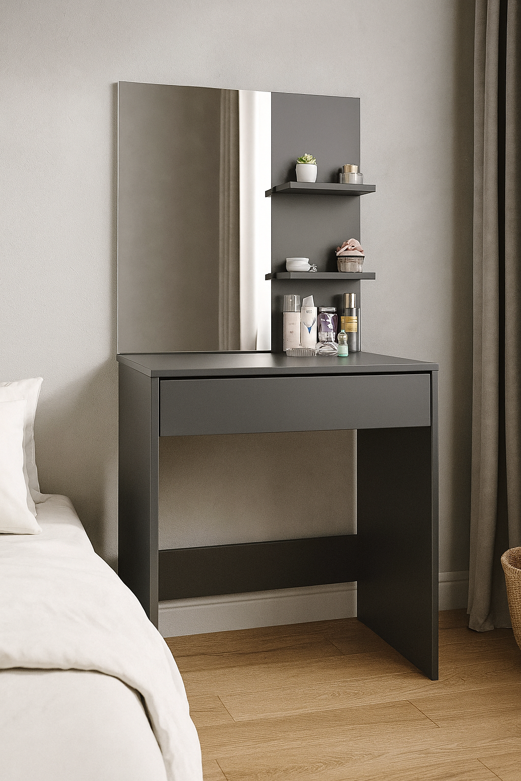 Шукаєте туалетний столик для макіяжу Наш сучасний туалетний столик із дзеркалом та місткими шухлядами – ідеальне рішення для вашої спальні чи гардеробної!