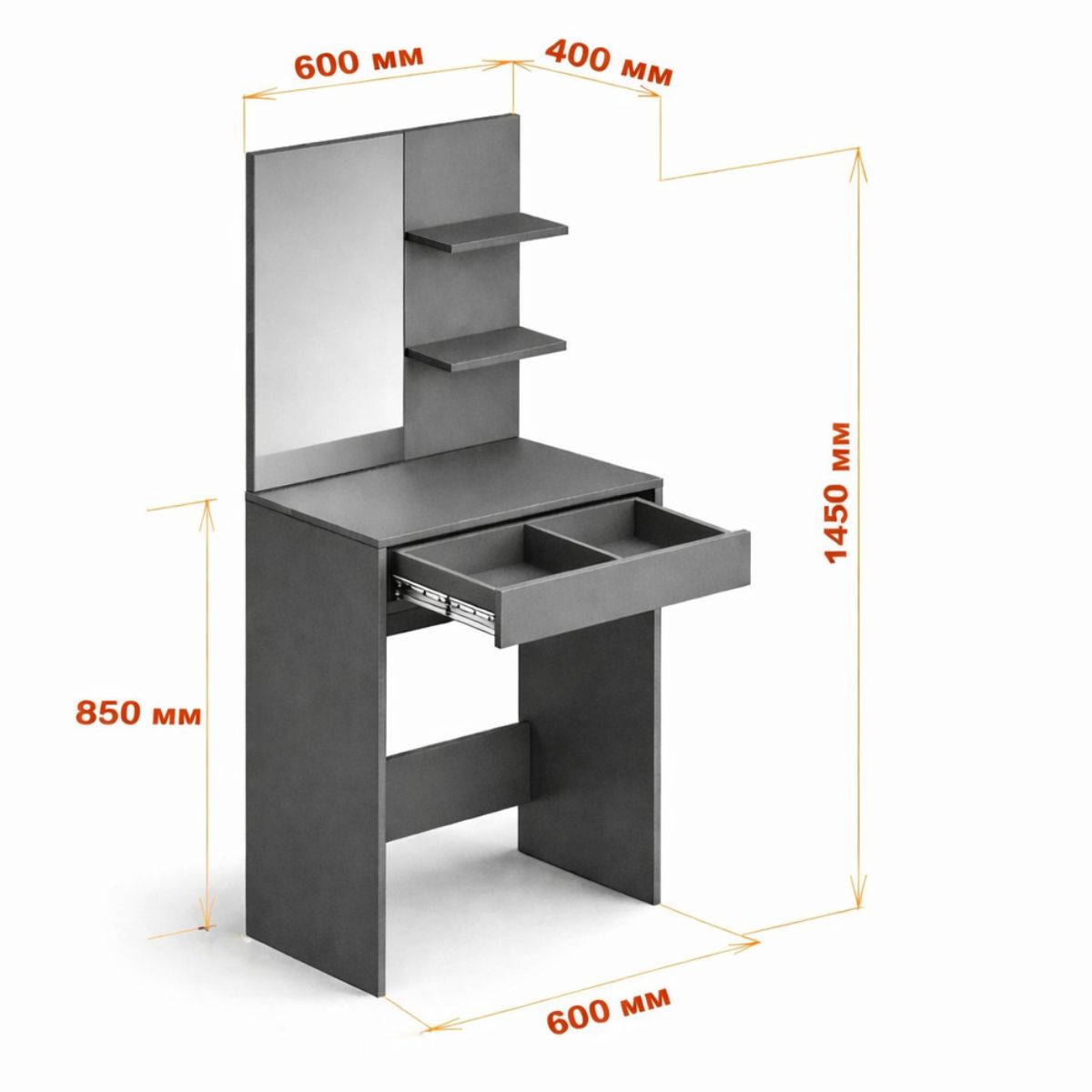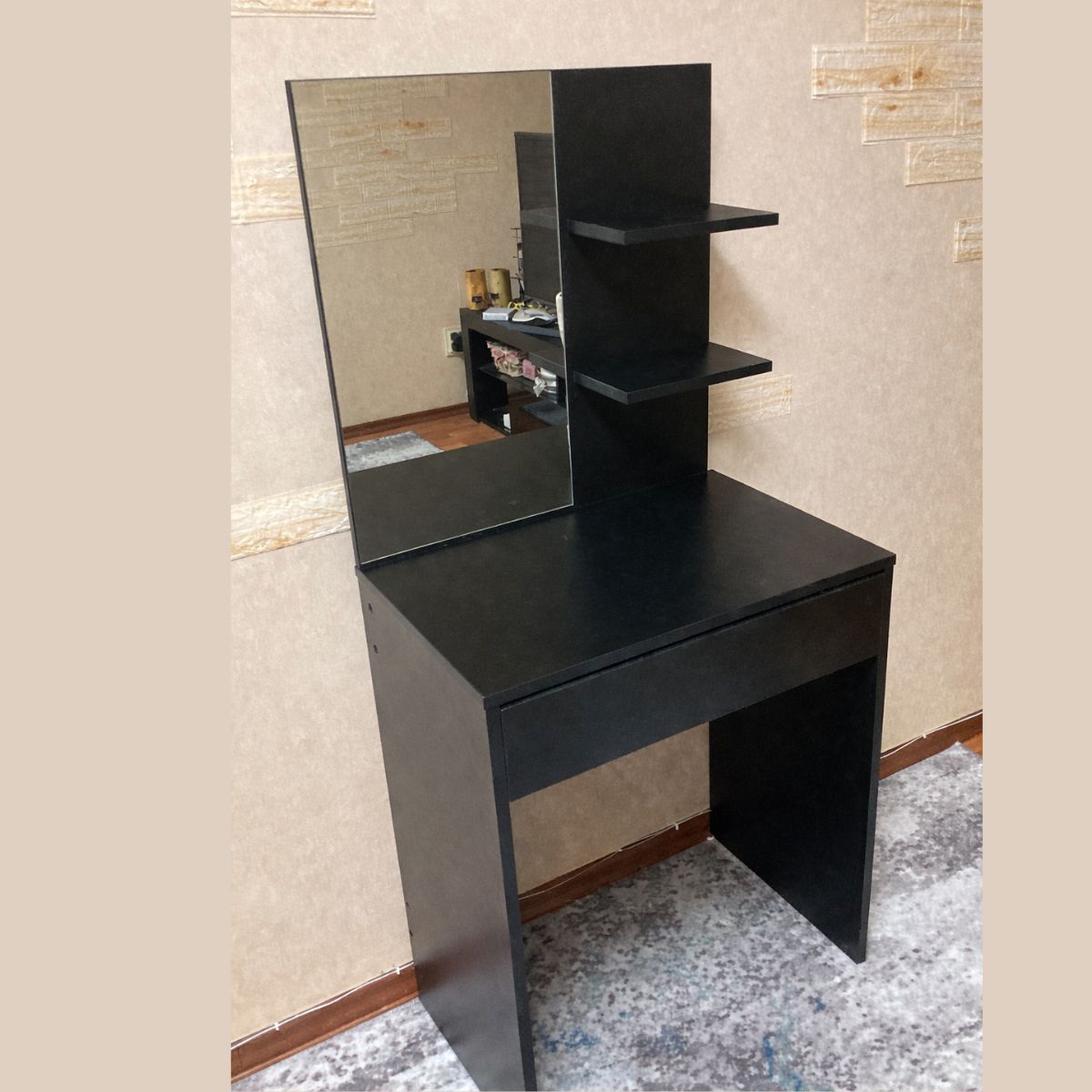 Будьте першим, хто залишив відгук на “Туалетний столик з дзеркалом, полицями та шухлядою 60×40×145 см, чорний”