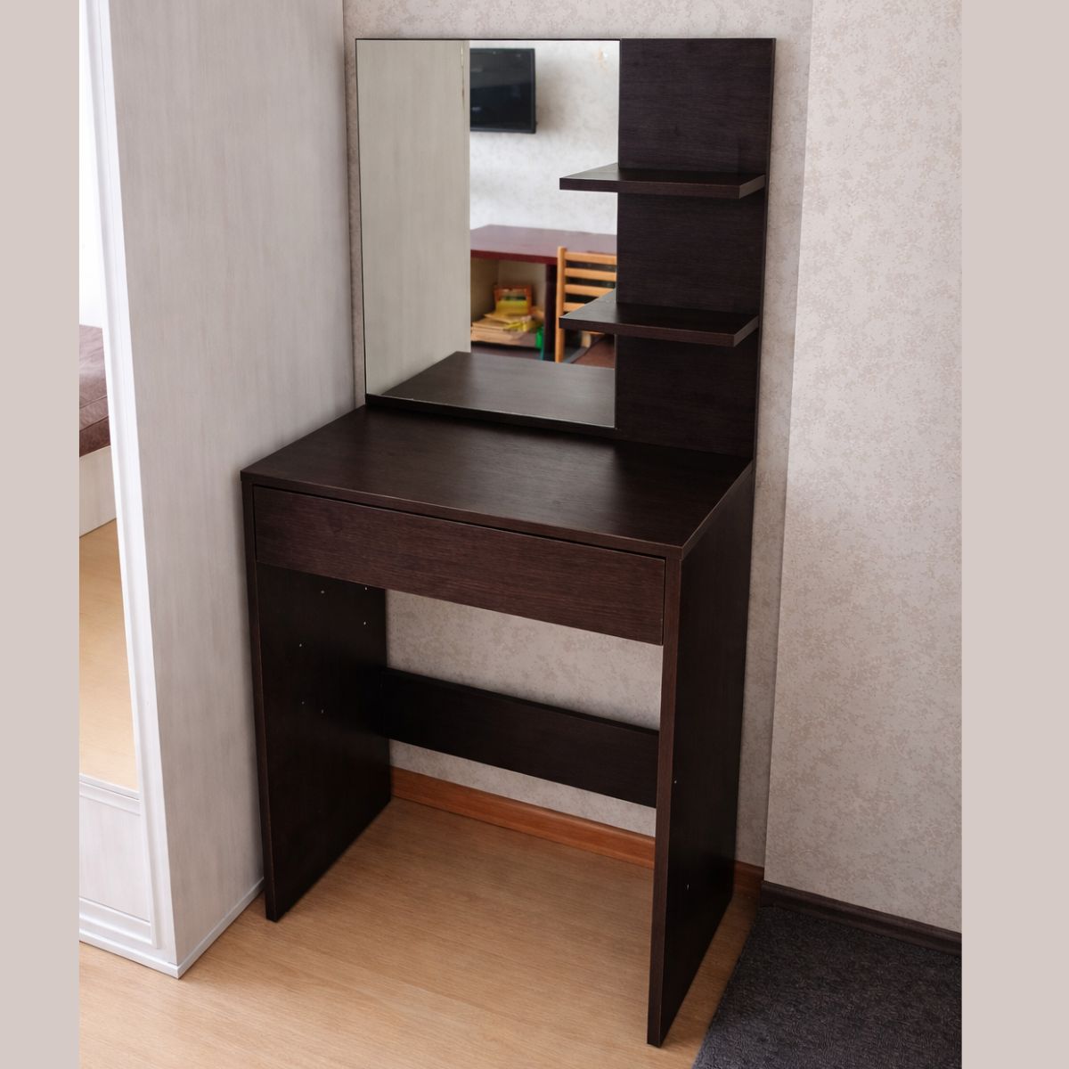 Туалетний столик з дзеркалом, полицями та шухлядою 60×40×145 см, венге